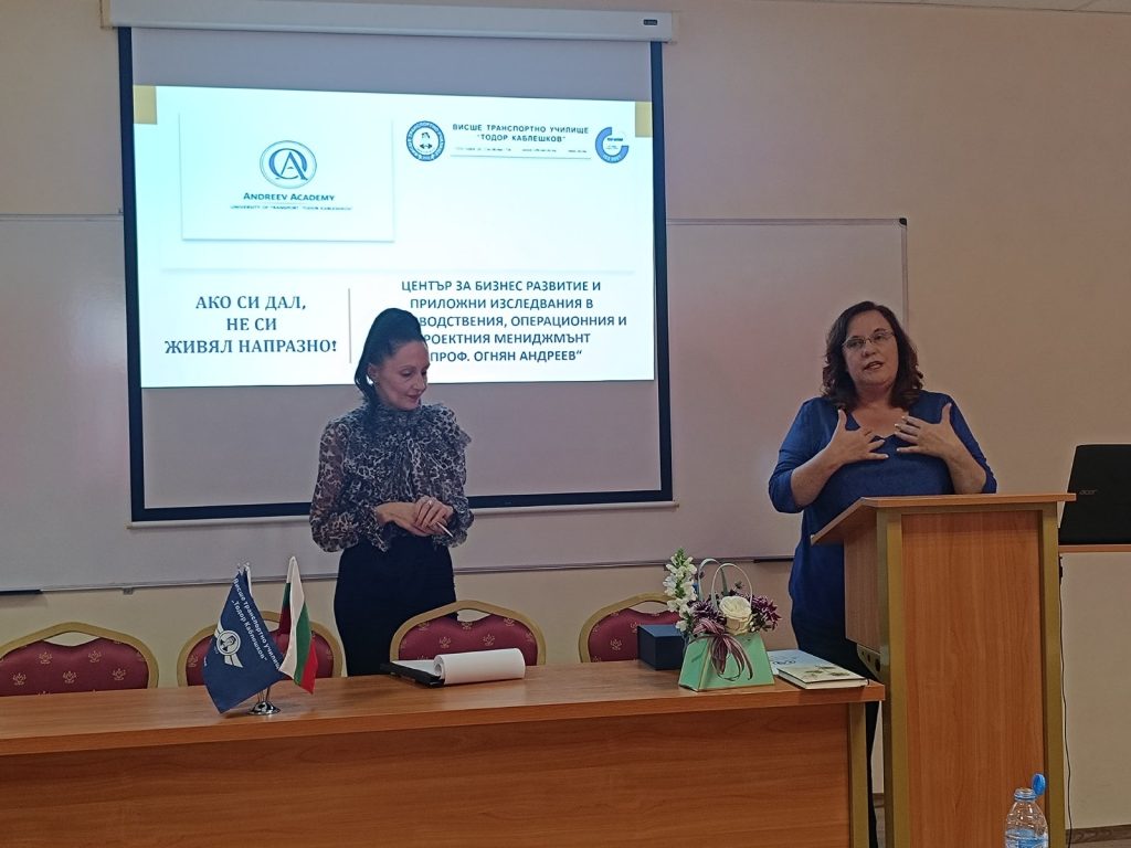 Благодарение на неуморната Габи и подкрепата на ръководството на ВТУ “Тодор Каблешков”, бе учредена Академия на името на проф. Огнян Андреев (цялото име: Център за бизнес развитие и приложни изследвания в производствения, операционния и проектния мениджмънт “проф. Огнян Андреев“) към катедра ТОУТ, ВТУ „Тодор Каблешков“
